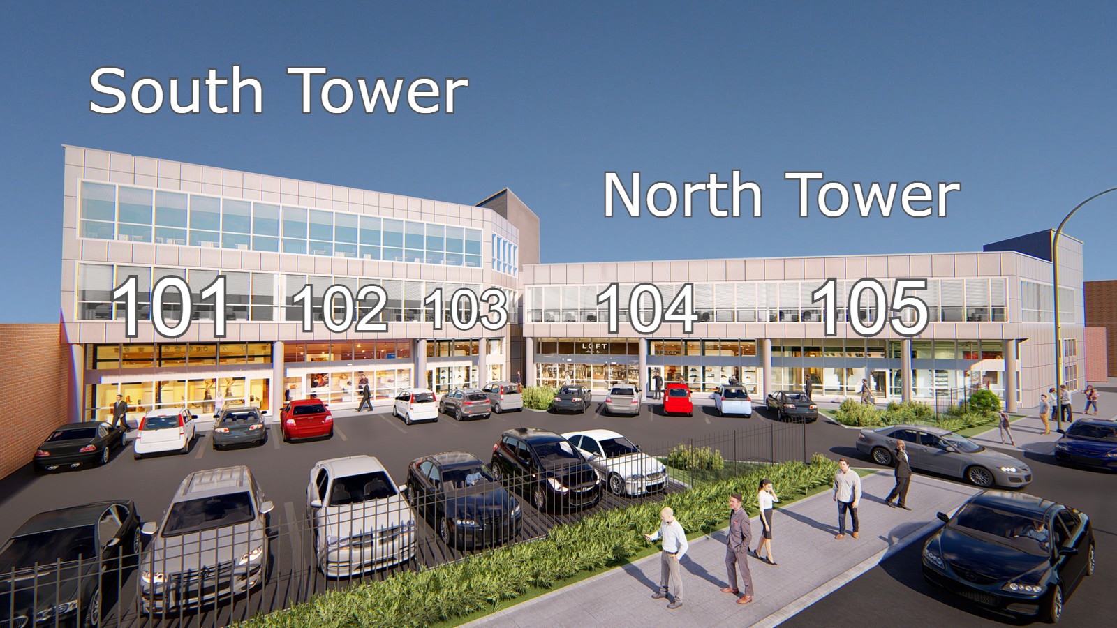 North Tower – Suites 104 and 105 can be combined for a Max Contiguous space of 2,050 SF